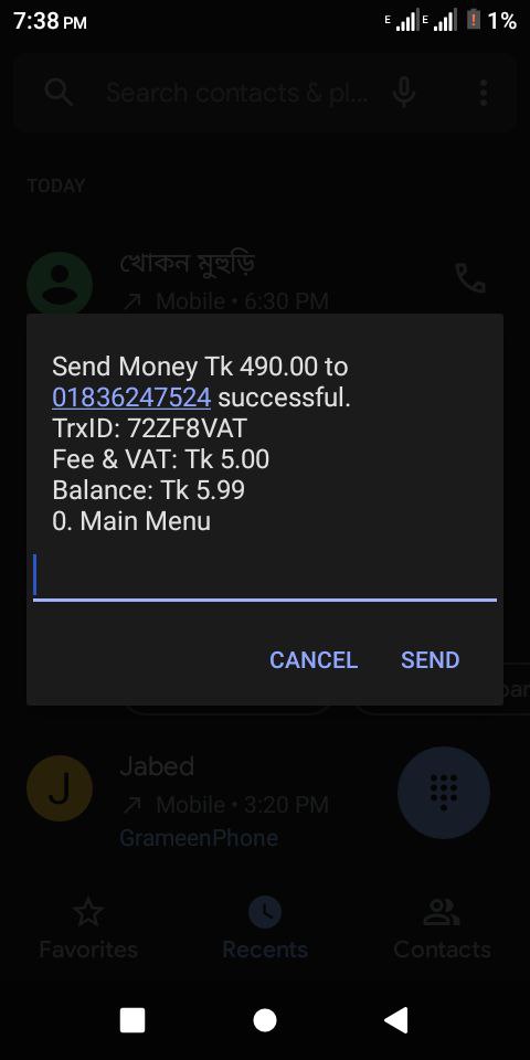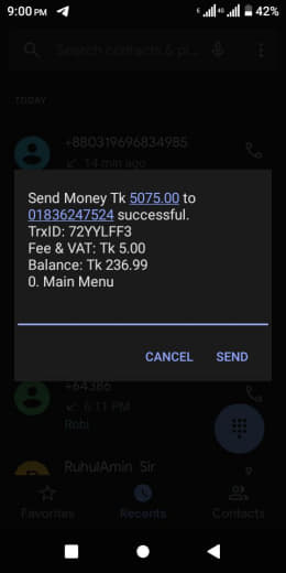 Send BDT 5000 Tk Only To Confirmed.