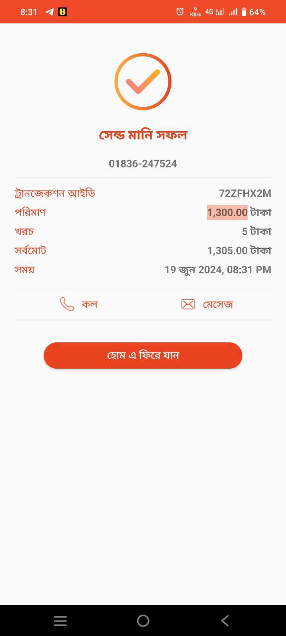 আমার কাছে এখন ২৫০০ টাকা আছে। বাকি ৫০০ টাকা ম্যানেজ করে রাতের মধ্যে টাকা পাঠাচ্ছি ভাই।