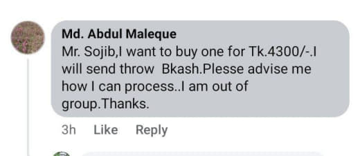 ভাই চায়নার অর্ডারটা ঈদের পর দেওয়া সম্ভব কি? আপনারা যদি কালই ডলার পাঠান তাহলে আমার পক্ষে টাকা ম্যানেজ করা অসম্ভব হয়ে যাচ্ছে। হঠাৎ করেই ফেসবুকে পোস্ট করেছেন আপনারা। এমন উদ্যোগ নেবেন আগে জানলে টাকা ম্যানেজ করে রাখতাম। সামনে ঈদ। অনেক খরচ আছে। এসময় কারও কাছে ধার চাইলেও পাওয়া কঠিন।