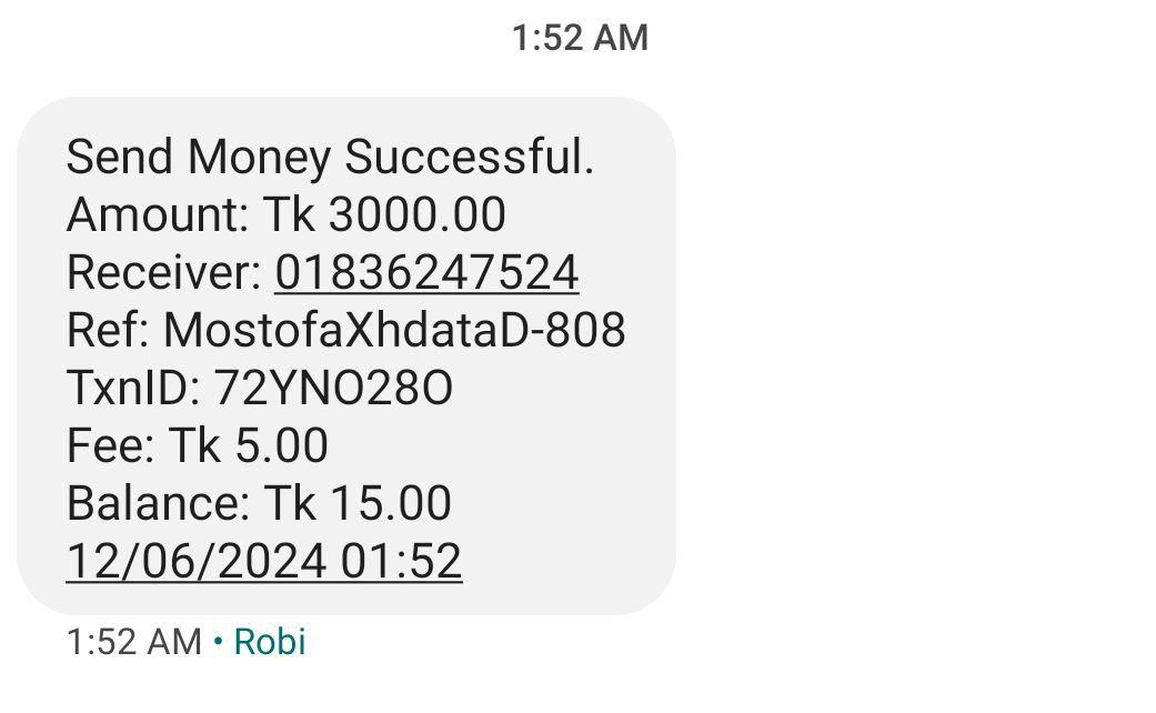 মোস্তাফা ভাইয়ের রিকুয়েস্টা রাখেন! মোস্তফা ভাই আজ সন্ধ্যার মধ্যে আপনি ৩০০০/= টাকা পাঠিয়ে দিন। বাদ-বাকি ২০০০/= টাকা ১৫ দিনের মধ্যে জমা দিবেন। ১৫ দিনের মধ্যে জমা না দিলে ৩০০০/= টাকা ফরফিট হয়ে যাবে।