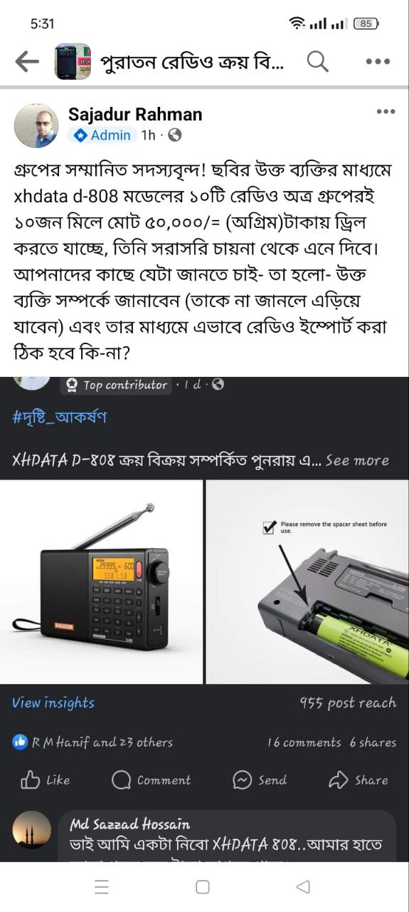 Moklesur ভাই শেয়ার দিলেন বাড়িতে রেস্ট্রিকশন আছে নতুন রেডিও প্রবেশ করানো।