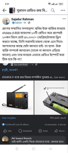 সমস্যা নাই ভাই সবাই মিলে একসাথে পোস্ট করলে নেগেটিভ ইম্প্যাক্ট আসবে না আমার মনে হয়। আর আমরা যারা xhdata d 808 হাতে পেয়ে গ্রুপে পোস্ট করব তখন সবারই রেডিও নেওয়ার আগ্রহ বেড়ে যাবে। তখন আপনার কাছ থেকে সবাই রেডিও নিতে চাইবে । যদি ব্লক খান তাহলে প্রেমীদের জন্য এটা খারাপ সংবাদ